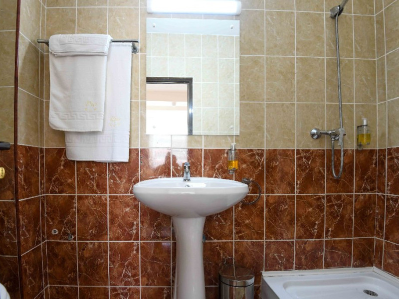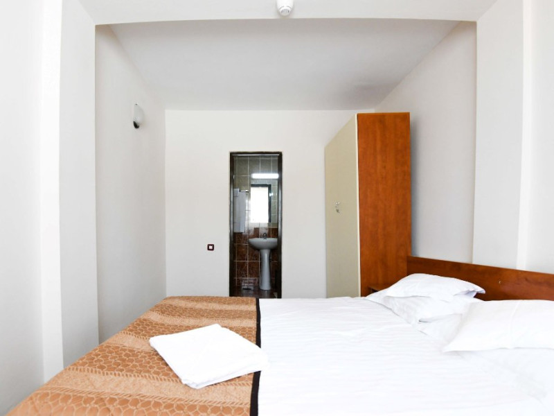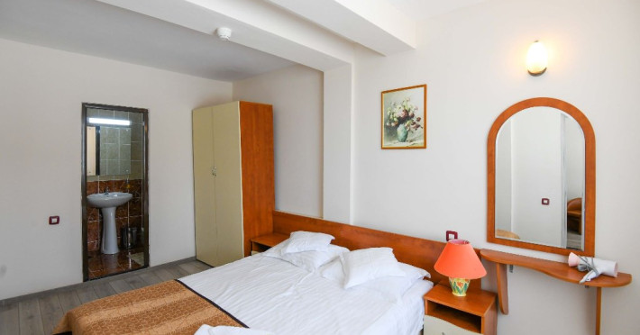 Camerele de la etaj, cu o suprafata de 15 mp, au pat matrimonial sau 2 paturi twin, balcon, AC, TV, internet, minibar, baie cu dus, telefon.