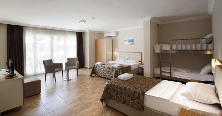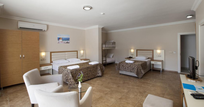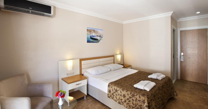 Camerele luminoase de la Risa Hotel Bodrum sunt dotate cu aer condiționat, Tv și seif. În camere există baie cu duș. Oaspeții au la dispoziție serviciul de room service pentru a servi masa sau diverse băuturi. Oaspeții au acces gratuit la serviciul Wi-fi în camere. Curățenia in cameră se face zilnic. Proprietatea oferă camere pentru familie cu o suprafață mai mare și un număr mai mare de paturi față de cele standard. Se pot rezerva de asemenea camere pentru nefumători.