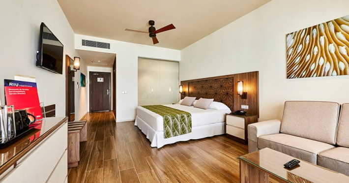 Dotari camere: Riu Atoll Maldives dispune de peste 250 camere cu vedere la mare, dotate cu TV satelit, seif, minibar, canapea, aer conditionat si ventilator, facilitati pentru prepararea ceaiului si a cafelei, baie privata cu dus sau cada, balcon/terasa.