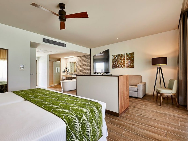 - Double room beach ocean front: 31 metri patrati, cu pat dublu king size sau doua paturi twin, are acces direct la plaja.