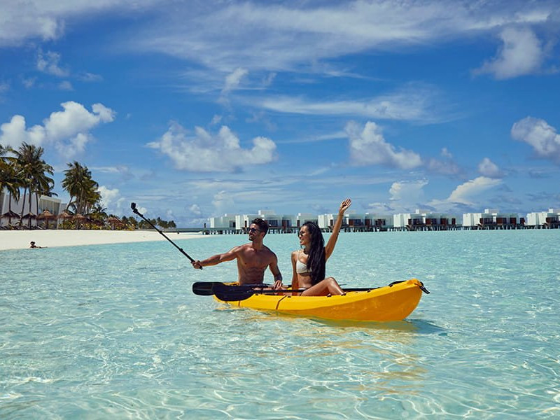 Facilitati hotel: Hotelul Riu Atoll Maldives pune la dispozitia clientilor piscina pentru adulti cu swim-up bar, piscina pentru copii, prosoape si sezlonguri, 3 restaurante tematice, respectiv restaurantul principal Dhoni, Beaf Steak House, Sofia si Boduberu cu lounge si terasa, 2 baruri si anume: Lounge Bar si Sports Bar, care sunt deschise non stop, club si loc de joaca pentru copii, centru SPA ( contra cost), acces gratuit Wi-Fi in toate zonele, sala fitness (turistii trebuie sa sa aiba incaltaminte adecvata si varsta de peste 18 ani). Pentru iubitorii sporturilor nautice hotelul ofera cursuri de scuba diving (cost suplimentar).