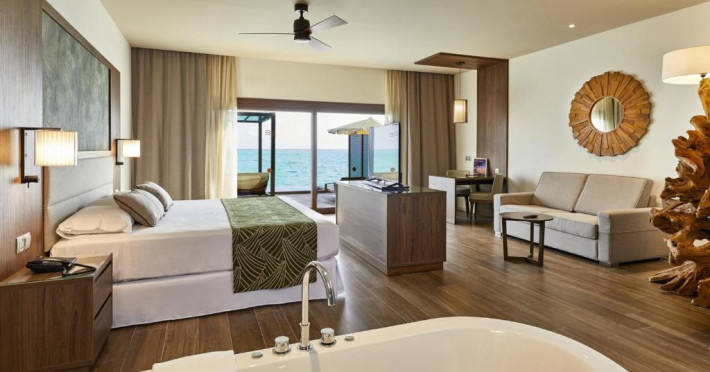 Riu Palace Maldivas- All Inclusive din Atolul Dhaalu are un restaurant, centru de fitness, o piscină in aer liber și un bar. Acest complex de 5 stele are grădină și camere cu aer condiționat, WiFi gratuit și baie privată. Proprietatea are recepție cu program non-stop și oferă room-service.