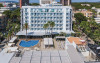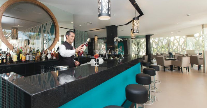The hotel offers a total of 133 rooms spread over 5 floors. The hotels facilities include a pleasant lobby with a 24-hour reception, a sitting area, a safe, a currency exchange desk, 2 lifts, a café, a lounge with a bar, a TV room, and a games room. Furthermore, there is an air-conditioned à la carte restaurant with non-smoking area and highchairs for infants as well as an Internet terminal..This hotel is in a superb location in the city centre and divided from the stunning sandy beach by just a promenade. Plenty of shops, stylish restaurants, chic cafés and bars, trendy nightclubs as well as access to the public transport network are all in the immediately nearby. Palma is 12 km away..The stylish en suite rooms are fitted with a hairdryer, a direct dial telephone, a safe and satellite/ cable TV. All rooms are equipped with a minibar, a fridge, a balcony and central heating as standard..A buffet-style breakfast, lunch and dinner are served daily..Towards the beach guests will find a furnished sun terrace with a heated swimming pool and a snack bar. A second sun terrace is also available. It is also possible to play a round of minigolf, table tennis and snooker (for an additional fee). The entertainment programme completes the various options on offer..The hotel accepts American Express, Diners Club, Eurocard, MasterCard and VISA.Datorita dinamicitatii domeniului disponibilitatea ofertelor se modifica de la un moment la altul. De aceea ofertele sunt valabile in limita locurilor disponibile. Agentia nu este responsabila pentru eventualele neconcordante care pot aparea intre informatiile privind tarifele si alte detalii din site si informatiile primite in agentie. In aceste cazuri vor avea prioritate, intotdeauna, informatiile primite in agentie.