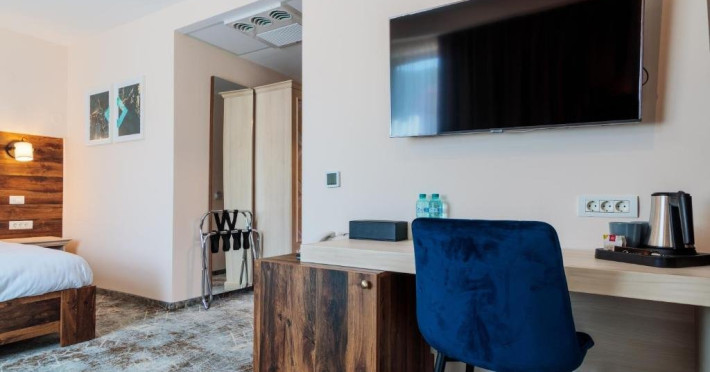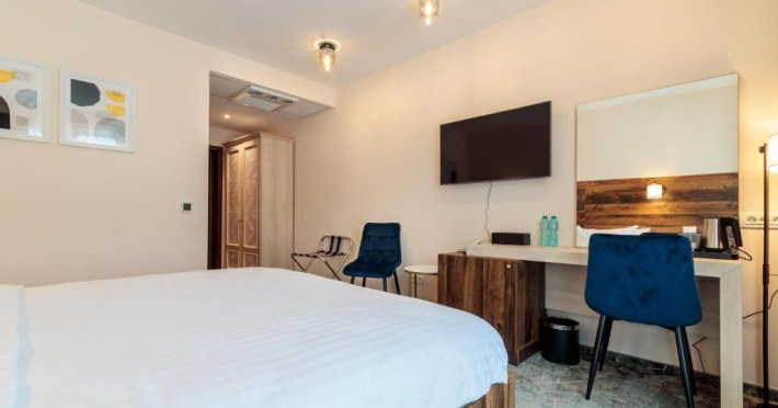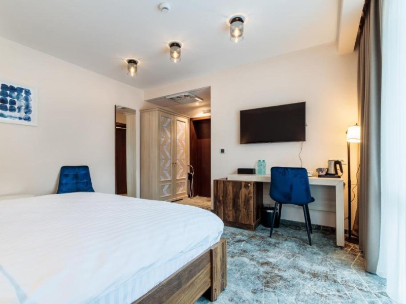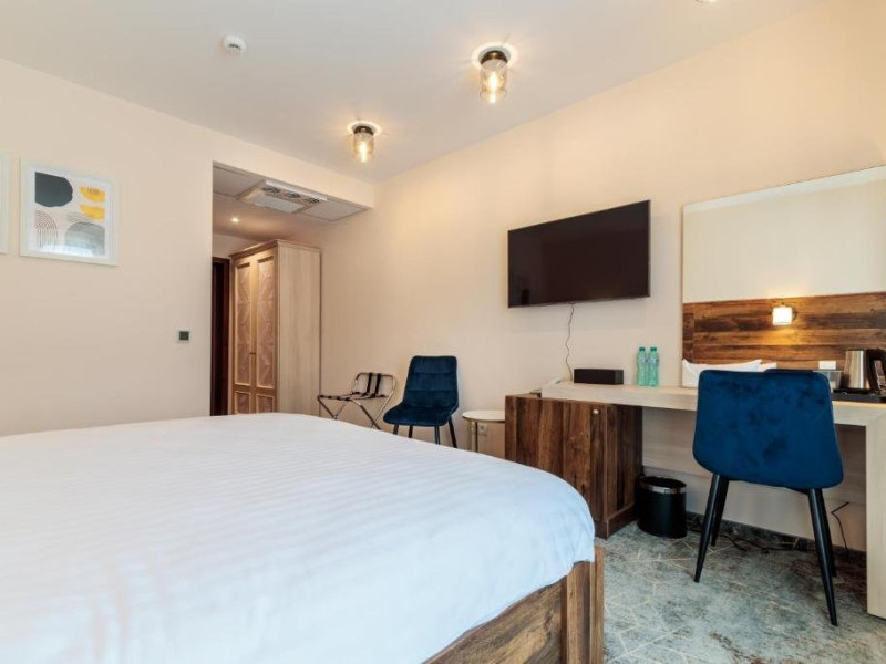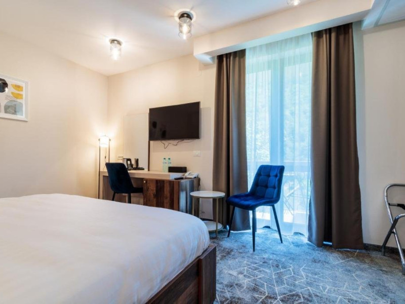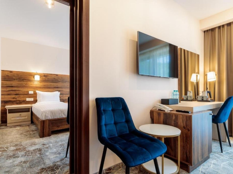 Toate camerele au aer conditionat, TV cu ecran plat cu canale prin cablu, fierbator, birou, dus si uscator de par. Camerele hotelului sunt dotate cu dulap si baie proprie.