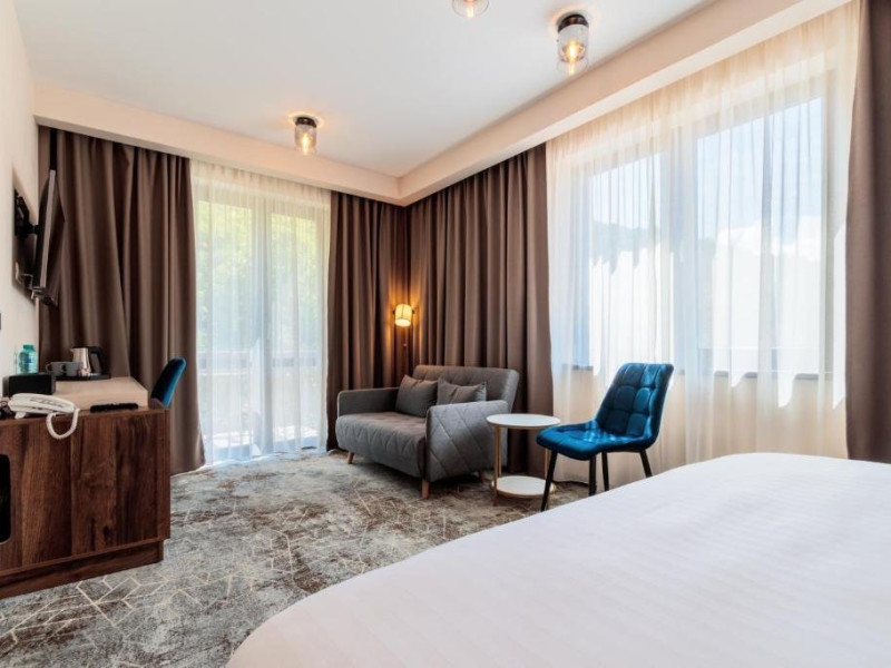 Camerele king dispun de un pat matrimonial, iar unele camere ofera si balcon frantuzesc sau vedere spre rau.