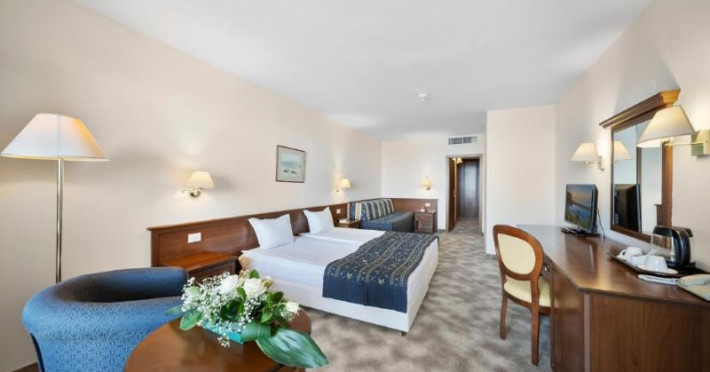 Hotelul Riviera Beach este amplasat direct pe țărmul mării, în apropierea unui parc fermecător înconjurat de copaci seculari, fiind situat în imediata vecinătate a stațiunii Nisipurile de Aur. Acesta reprezintă un simbol al progresului și al inovației, fiind un complex hotelier modern ce oferă o experiență deosebită oaspeților săi.Facilități hotel