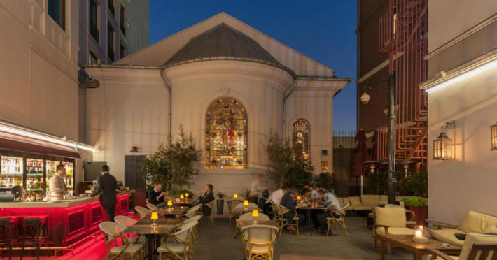 Café Royal oferă gustări delicioase și băuturi, cu vedere la Cornul de Aur. Restaurantul Chapelle are o atmosferă pariziană și servește mese de cină cu preparate internaționale. Samdan13 este unul dintre cele mai apreciate restaurante gourmet din Istanbul.