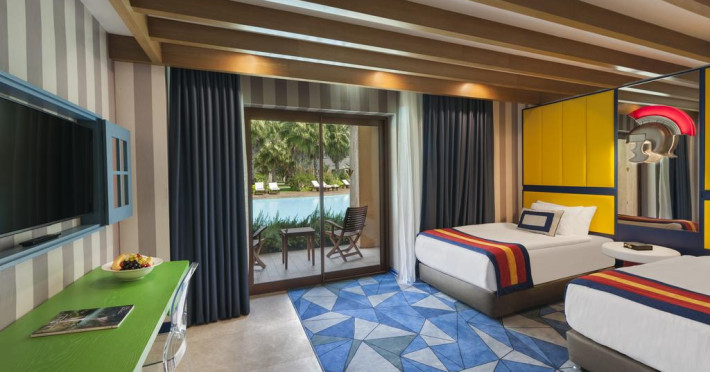 Hotelul este localizat in statiunea Belek, la 35 km de aeroportul din Antalya. la 5 km de centrul statiunii Belek si 9 km de The Land Of Legends. Acesta se intinde pe o suprafata de 405.000 mp si dispune de o plaja privata de 700 m. Facilitati hotel: restaurant principal, 4 restaurante a la carte cu rezervare prealalbila; 10 baruri ; piscina exterioara, piscina exterioara +16 ; cinema, cabinet medical, centru SPA, coafor, 2 terenuri de fotbal ,internet WiFi (gratuit); baie turceasca, baie ruseasca, sauna,baie cu aburi, sala de fitness, aerobic, aqua aerobic, volei, yoga, zumba, crossfit ,lupte martiale, 7 terenuri de tenis cu suprafata dura , tenis de masa, darts, tir cu arcul , sporturi nautice fara motor, perete de alpinism 12 m , programe animatie, muzica live, discoteca. Acest hotel deluxe ofera oaspetiilor sai ,camere moderne si dotate cu toate facilitatiile necesare pentru asigurarea unui comfort sporit.Printre facilitati se enumera: baie cu dus sau cada, foehn, halat, papuci, aer conditionat , televizor, telefon, minibar, fierbator (set de ceai si cafea - gratuit) seif (gratuit), balcon. Pentru cei mici exista urmatoarele facilitati : restaurant, piscina, 2 tobogane acvatice, loc de joaca, miniclub (4-7 ani), maxi club (8-11 ani), R Club (12-16 ani).Descriere si facilitati hotel