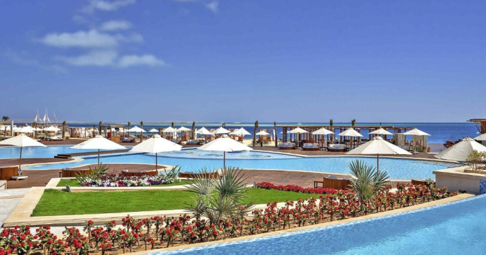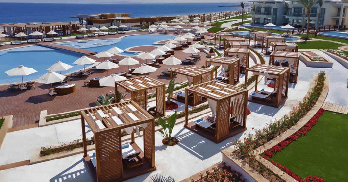 Acest Resort Premium Ultra all-inclusive din Hurghada oferă doar suite și vile cu cazare pe malul mării, cu o suprafață totală de 255.000 m2. Dispune de 1 km de plajă privată cu nisip, 30 de piscine (9 tipuri), 1 restaurant principal tip bufet, 7 restaurante à la carte, 14 baruri și Wi-Fi gratuit in intreaga proprietate. Acest hotel de 5 stele oferă cabane private la plajă și piscină, la cerere.