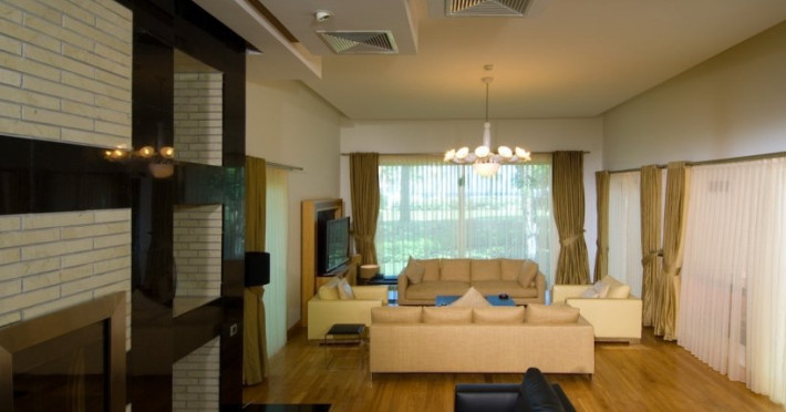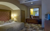 16 deluxe suite cu doua camere (living, dormitor cu usa, 2 bai (una cu dus), 2 TV, terasa cu iesire la piscina, max. 3 pers., 63 mp, servicii VIP);
