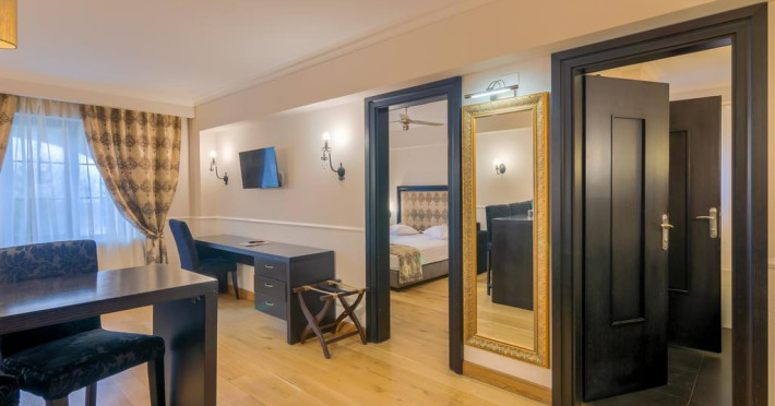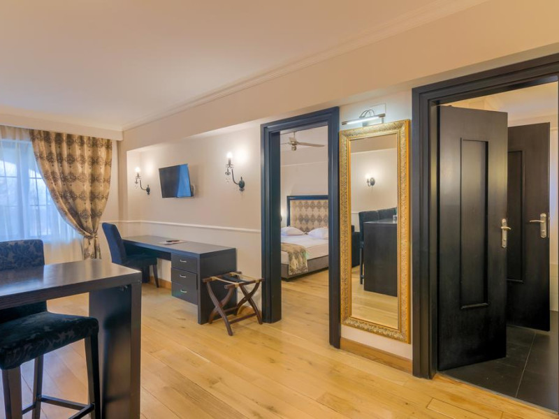 Hotelul este situat la numai 20 de metri de patinoarul din Poiana BraÅov si la 150 metri de partia de ski Bradul. Facilitati hotel : 46 camere spaÈioase,dintre care opt apartamente au fost create pentru cazarea oaspeÈilor care doresc sÄ se bucure de spaÈiozitatea unei camere de zi, bucÄtarie Èi bar,restaurant , bar, terasa de vara, sala de conferinta de 120 locuri , centru Spa, piscina acoperita cu bazin incalzit, sauna, jacuzzi Facilitati camere : Minibar, DuÅ, Seif, TV, Telefon, Aer condiÅ£ionat, UscÄtor de pÄr, Halat de baie, Birou, Articole de toaletÄ gratuite, Ventilator, ÃncÄlzire, Papuci de casÄ, CamerÄ(e) comunicantÄ(e) disponibilÄ(e), Izolare fonicÄ, PardosealÄ de lemn sau parchet, Serviciu de trezire, FierbÄtor electric, SaunÄ, GarderobÄ sau dulap, Vedere la munte, Prosoape, Lenjerie de pat, Etaje superioare accesibile cu liftul, Suport de umeraÈeDatorita dinamicitatii domeniului disponibilitatea ofertelor se modifica de la un moment la altul. De aceea ofertele sunt valabile in limita locurilor disponibile. Agentia nu este responsabila pentru eventualele neconcordante care pot aparea intre informatiile privind tarifele si alte detalii din site si informatiile primite in agentie. In aceste cazuri vor avea prioritate, intotdeauna, informatiile primite in agentie.