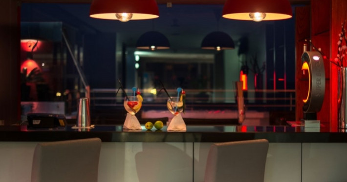 The restaurant serves fresh local cuisine and a variety of international dishes. Cocktails are available at the bar and can be enjoyed on the terrace. Rocamar Beach offers evening entertainment, including live music.