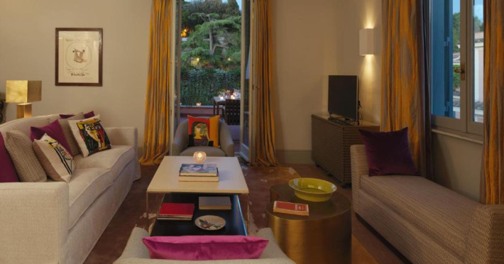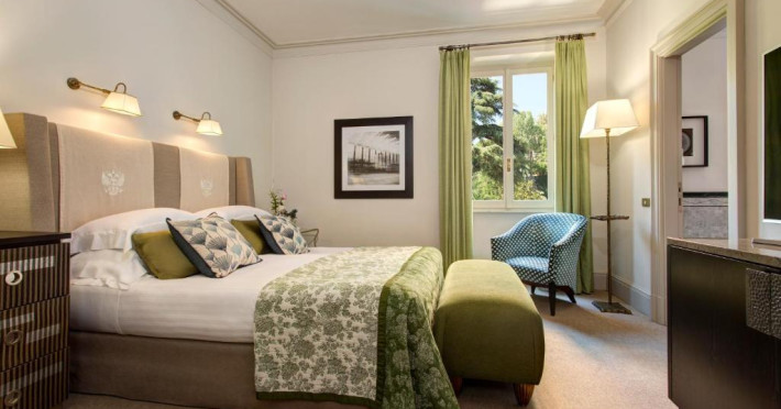 Restaurantul Le Jardin De Russie combină bucătăria traditională italiană cu arome internationale, iar preparatele sunt servite in grădină cand vremea este frumoasă. Barul Stranvinskij serveste masa de pranz si cocktailuri in timpul serii.