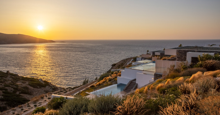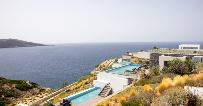 Rock Bay Villas is a private guarded complex of 4 villas with panoramic views of the Mediterranean Sea. Located on a picturesque slope of the Crete island, the elegant and contemporary villas will offer you privacy and a comfortable stay in a cozy bay with a private beach. Each villa has terraces with panoramic views, a pergola with a kitchen and grill, and a dining area. Private swimming pools with fresh water and heating option.