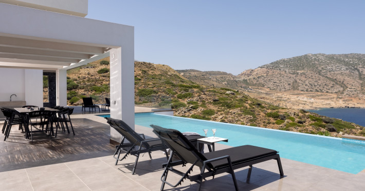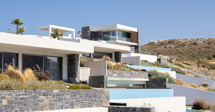 Rock Bay Villas is a private guarded complex of 4 villas with panoramic views of the Mediterranean Sea. Located on a picturesque slope of the Crete island, the elegant and contemporary villas will offer you privacy and a comfortable stay in a cozy bay with a private beach. Each villa has terraces with panoramic views, a pergola with a kitchen and grill, and a dining area. Private swimming pools with fresh water and heating option.
