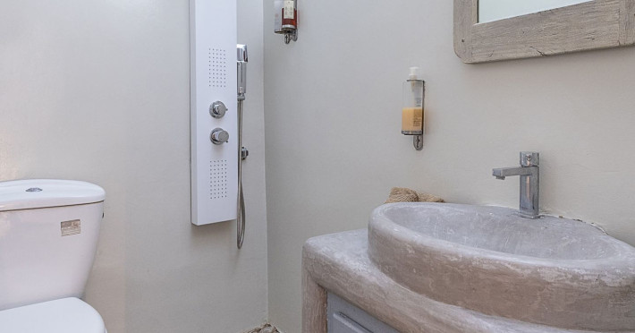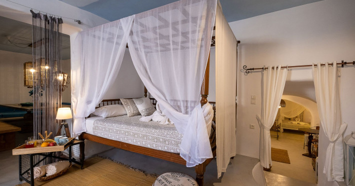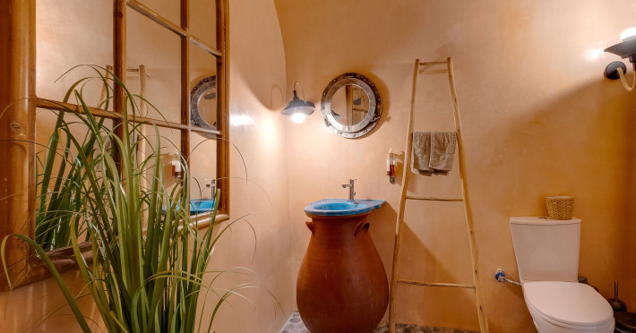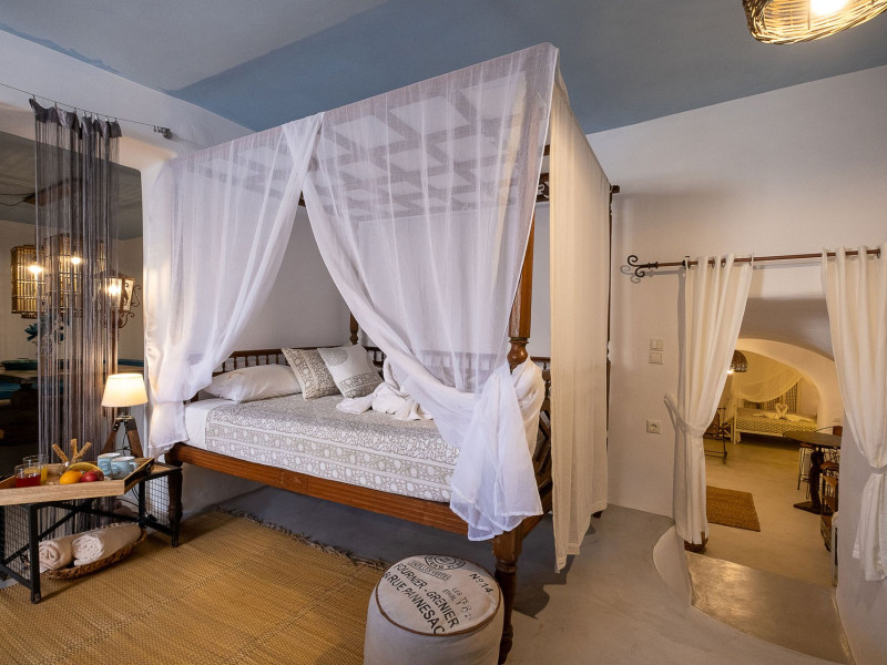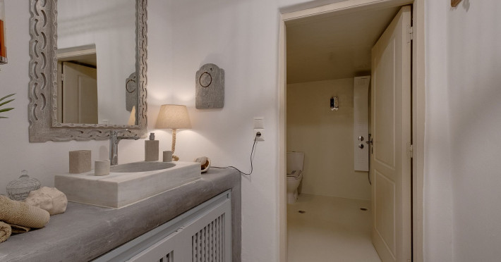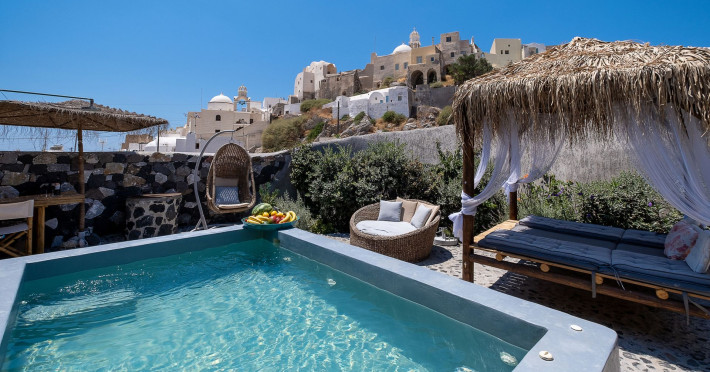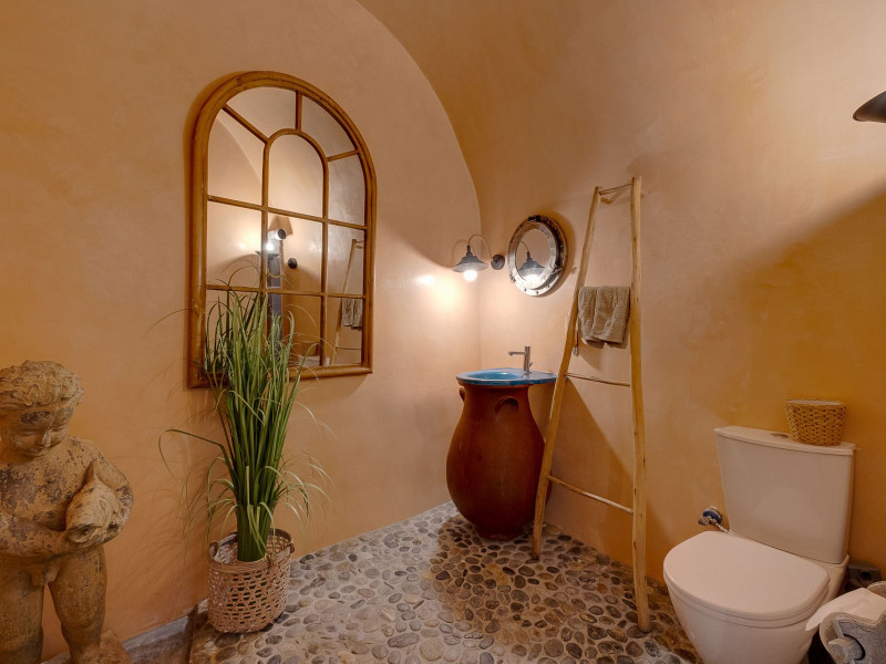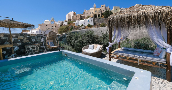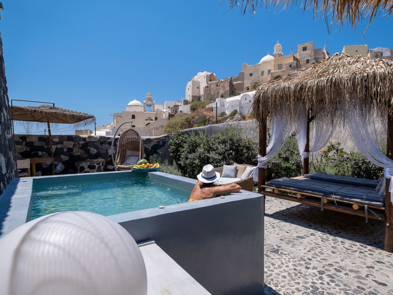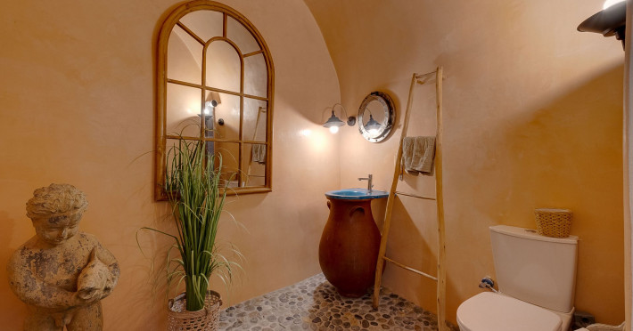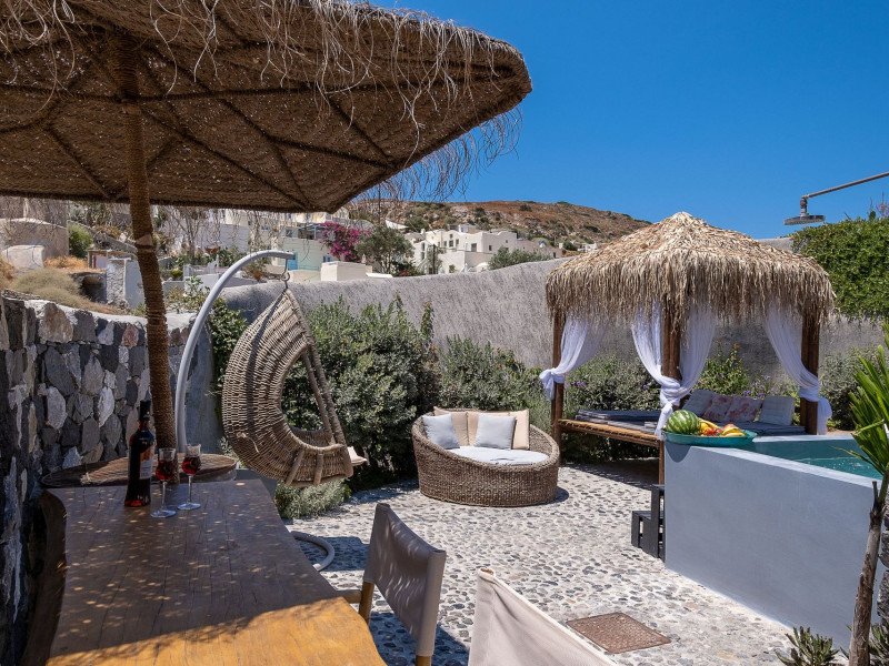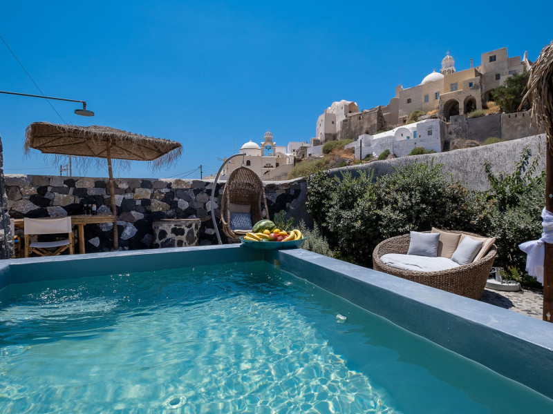 Modern Comfort in a Timeless Cave SettingImpressive 750 SQM: 510 sqm Courtyard + 240 sqm Indoor SpacePrivate Pool & Jacuzzi – Hot Tub Dreaming of the ultimate Santorini escape, whether for a family holiday or a romantic retreat? Welcome to Rock Villas “Legend” and “Myth”, nestled in the enchanting village of Emporio. Here, history, romance, and modern comfort come together in a truly unique setting. Fully renovated with respect to Cycladic architecture, these exceptional cave villas offer luxury, privacy, and tranquility for up to 11 guests, just 12 km from Fira.Welcome to “Legend” and “Myth”, two extraordinary domed cave villas carved into the ancient volcanic rock of Emporio. Designed to blend harmoniously with Santorini’s natural landscape, they reflect traditional Aegean architecture while offering all the comforts of a modern stay. A true highlight is the impressive 750 sq. meter layout, featuring a beautifully equipped 510 sq. meter courtyard—ideal for gatherings—and 240 sq. meters of stylish, spacious indoor living areas. In this luxurious sanctuary, up to 11 guests can unwind in:- 5 Elegant Bedrooms: Relax beneath the iconic domed ceilings, with comfortable double or king-sized beds designed for restful nights.- Lower Rock Yard: Enjoy pure relaxation in the private pool (3x2m), surrounded by cozy lounge corners and unforgettable views of the medieval “Kasteli” castle.- Upper Vistas Yard: Unwind in the jacuzzi – hot tub, let the little ones enjoy their own play area, and gather for al fresco dining with a grill, spectacular views of the castle, and a glimpse of the sea.- 2 Living Rooms: Perfect for downtime, featuring 2 PS4 consoles, HDTV with Netflix, books, and board games for everyone to enjoy.- 2 Fully Equipped Kitchens: Ideal for home cooking and shared meals, with dining space for up to 20 guests in total. Your comfort is our priority, with natural and technical ventilation throughout, complemented by six air conditioners to ensure a pleasant stay. Families are especially welcome — from baby cots and high chairs to a baby bath, we’ve included everything you may need to keep your little ones happy and comfortable. SANTORINI ADVENTURES"An idyllic location with stunning scenery, peaceful and relaxing!""Local stores are about a 10min walk." Enhance your stay with exclusive experiences available upon request:- Adventure Seekers: Discover Santorini from the sea with unforgettable sailing cruises. Choose between traditional caiques, catamarans, or yachts — or rent a car and explore the island at your own pace.- Relax & Rejuvenate: Enjoy massage therapies and facial treatments from skilled professionals, right in the comfort of your villa.- Mind & Body: Reconnect with yourself through private aqua yoga classes and meditation music sessions, designed to bring balance and deep relaxation. Eager to explore Santorini on your own? Here are our top recommendations:- Emporio Village & Kastelli: Just a 2-minute walk away, discover a medieval castle settlement with Byzantine chapels, winding alleys, and a timeless local atmosphere.- Black Beaches: Only a 7-minute drive to Aghios Georgios, Perissa & Perivolos, where you can experience Santorini’s famous volcanic sand and vibrant beach vibe.- Fira: Around 25 minutes away, the lively heart of Santorini, offering breathtaking caldera views, shopping, and an endless choice of restaurants and cocktail spots.- Megalochori: A charming village only 8 minutes away, known for its whitewashed alleys, blue-domed churches, and some of the island’s best wineries — perfect for a memorable wine tasting.- Pyrgos: A beautiful hilltop village just 10 minutes away, surrounded by vineyards and offering panoramic views across the entire island.- Vlychada: Only 9 minutes away, with dramatic volcanic cliffs, a picturesque marina, the Tomato Industrial Museum, and unforgettable horse riding experiences nearby.- Akrotiri: Visit the famous archaeological site and explore the rich history of Santorini through one of the most important prehistoric settlements in the Aegean.- Volcano: Take a boat trip to the volcanic island, walk through its unique landscapes, and experience Santorini’s iconic hot springs. We’re here to make your stay truly memorable — from arranging a sunset cruise to sharing hidden gems only locals know.Explore our photos to get a closer look at the inviting details and unique atmosphere of the property. The home is yours to enjoy, with full access to all appliances and amenities for a comfortable, effortless stay.Hot tub heating is available upon request with an additional charge of €45 per day during the operating season (May to October). Please let us know at least 48 hours before check-in so we can have everything prepared for your arrival.Seasonal operation: The pool and jacuzzi operate from May to October, depending on weather conditions.We’re always happy to assist you whenever needed — available from 10am to 6pm for services and 24/7 for any emergencies. Make your stay a stress-free experience by following our house rules:-Check-in time is 3PM–10PM and check-out time is before 11AM, so we can prepare everything perfectly for the next guests.- We warmly welcome one pet up to 8kg. Your furry friend will feel right at home — a pet basket and accessories are provided for their comfort.- To keep the indoor spaces fresh and comfortable for everyone, smoking (including vaping and e-cigarettes) is allowed outdoors only.- Please refer to the “Additional Rules” section under the “Things to Know” heading for the complete overview of our house rules, so everything is clear before arrival. The property is approved by the Greek National Tourism Organization - Registration number: ΕΣΛ-1053955Modern Comfort in a Timeless Cave SettingImpressive 750 SQM: 510 sqm Courtyard + 240 sqm Indoor SpacePrivate Pool & Jacuzzi – Hot Tub Dreaming of the ultimate Santorini escape, whether for a family holi