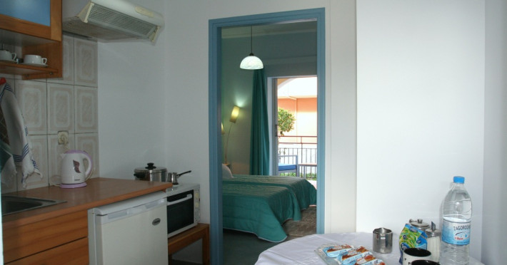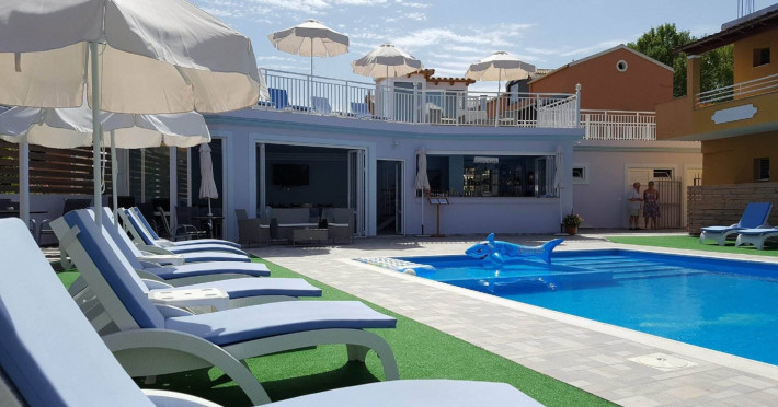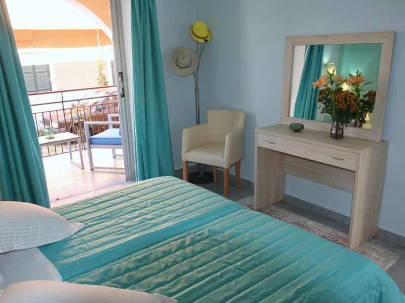 We located in the northern part of Corfu in Roda and we are a family-run resort with apartments and studios. With excellent functional facilities, offering comfort and hospitality to be enjoyed by visitors. Our renovated apartments and a fully equipped swimming pool, which, taken together and in a spirit of excellent service to spend a magical holiday. Located 35 km from the city center, 37 km from the airport and 33 km from the port approximately 35- 40 drive.