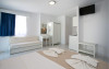 Fiecare cameră dispune de cană-fierbător. În camere există baie cu duș prevăzută cu foehn. Unele camere au balcon cu vedere la mare, unde oaspeții pot admira apusul sau răsăritul soarelui. Camerele confortabile de la Rodon House au pardoseală de gresie/ marmură, aer condiționat, Tv cu canale prin satelit și seif. Oaspeții au acces gratuit la serviciul Wi-fi în camere. Toate camerele spațioase de la Rodon House au zonă de relaxare cu canapea, ceea ce oferă un plus de confort. Fiecare unitate de cazare include o chicinetă utilată cu frigider. Proprietatea oferă camere pentru familie cu o suprafață mai mare și un număr mai mare de paturi față de cele standard. Se pot rezerva de asemenea camere pentru nefumători.