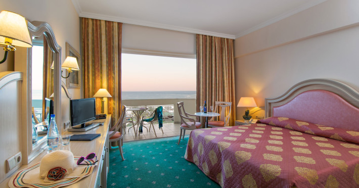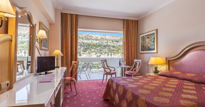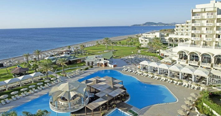 This 5-star hotel is located directly on the Kallithea beach. With luxurious rooms and grand pools, the Palladium offers full relaxation 9 km from historic Rhodes.All of the Rodos Palladium’s spacious guestrooms offer modern accommodations and panoramic sea views.A well-appointed spa and wellness centre offers massages and skin care. For guests who want a good work out, there is an fitness centre with an expert staff and many outdoor sport facilities.Guests can enjoy a cocktail by the impressive island-inspired outdoor pool or head inside for a private hot tub session. The Rodos Palladium staff offers cooking classes and aqua aerobic.Classic Mediterranean cuisine with a contemporary style is served at the hotel’s 3 restaurants. An American-style breakfast buffet is served daily.The hotel offers a supervised kids’ club with daily activities.The Rodos Palladium is just 15 km from the Rhodes International Airport.This 5-star hotel is located directly on the Kallithea beach. With luxurious rooms and grand pools, the Palladium offers full relaxation 9 km from historic Rhodes.All of the Rodos Palladium’s spacious guestrooms offer modern accommodations and panoramic sea views.A well-appointed spa and wellness centre offers massages and skin care. For guests who want a good work out, there is an fitness centre with an expert staff and many outdoor sport facilities.Guests can enjoy a cocktail by the impressive island-inspired outdoor pool or head inside for a private hot tub session. The Rodos Palladium staff offers cooking classes and aqua aerobic.Classic Mediterranean cuisine with a contemporary style is served at the hotel’s 3 restaurants. An American-style breakfast buffet is served daily.The hotel offers a supervised kids’ club with daily activities.The Rodos Palladium is just 15 km from the Rhodes International Airport.