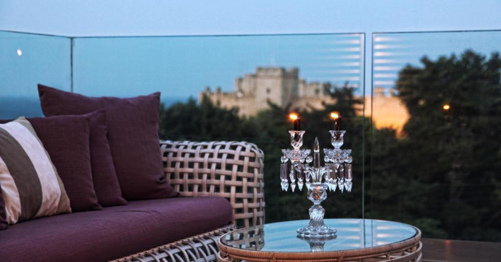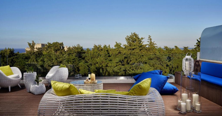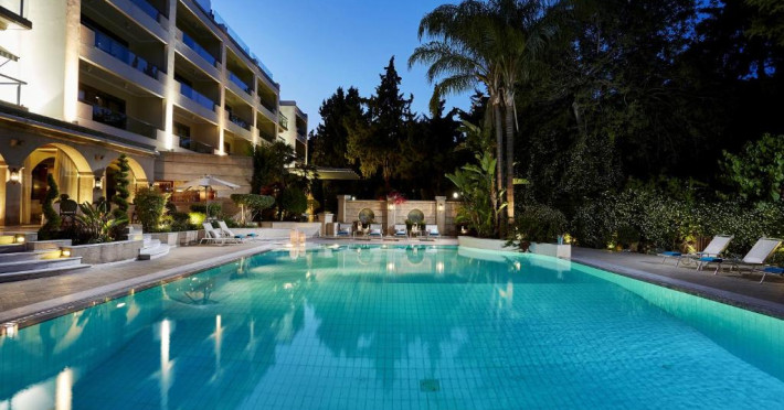 Acest hotel de 5 stele are vedere la orasul medieval din Rodos, oferind grădini incantătoare, o piscină in aer liber, un centru spa cu servicii complete si tratamente de infrumusetare.