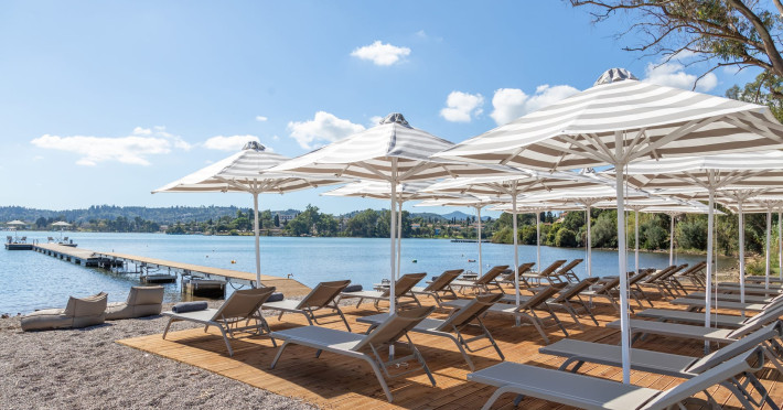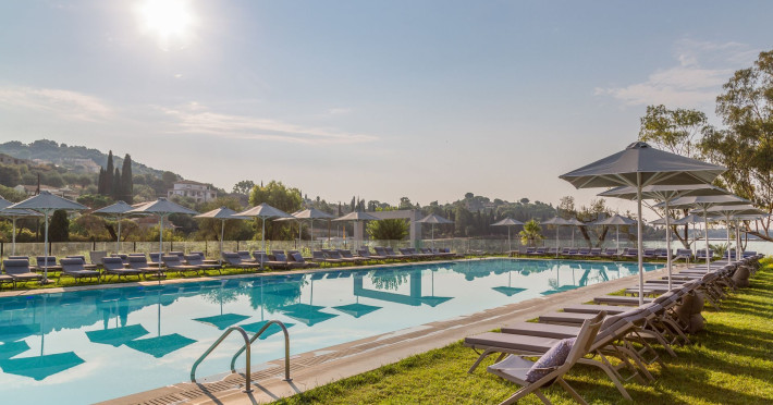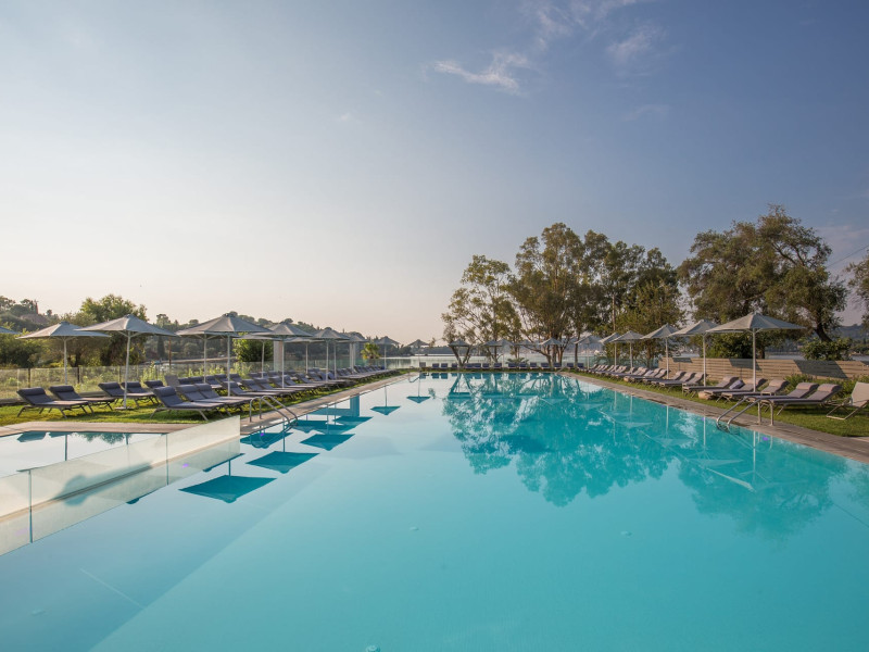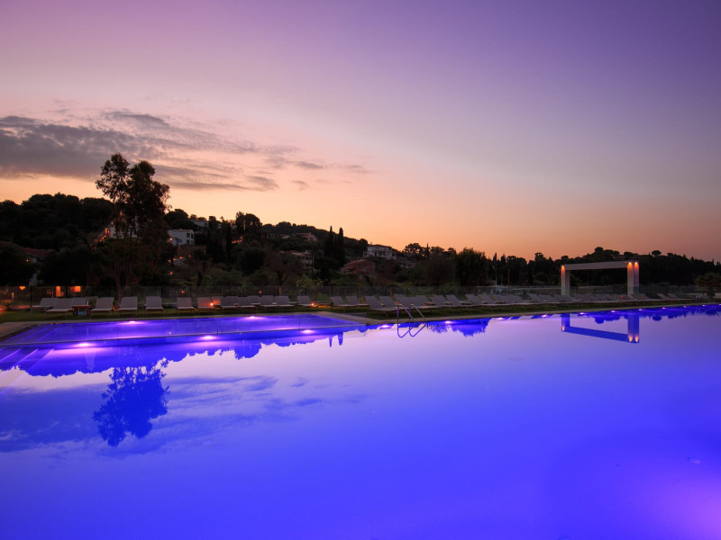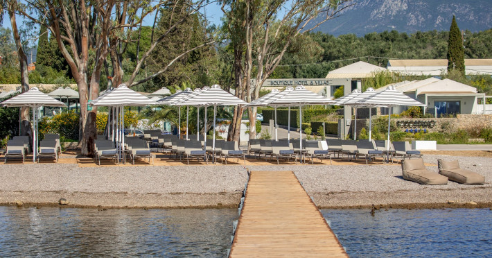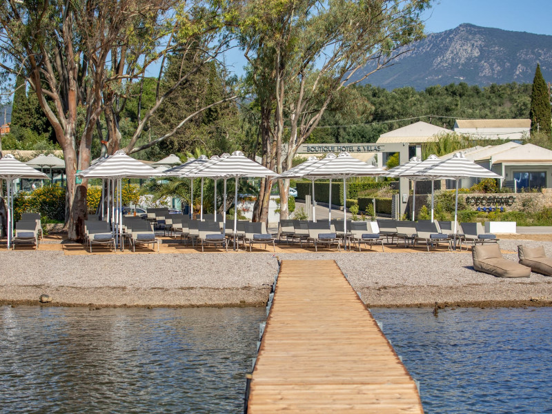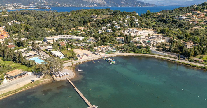 The complex is situated 100m from the Kommeno Bay, while Corfu’s Town is only 10km away. Corfu’s International airport Ioannis Kapodistrias is in an approximate distance of 13km, while the distance to the Port is only 8km.