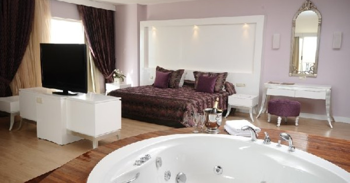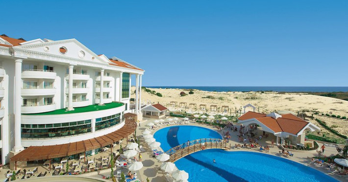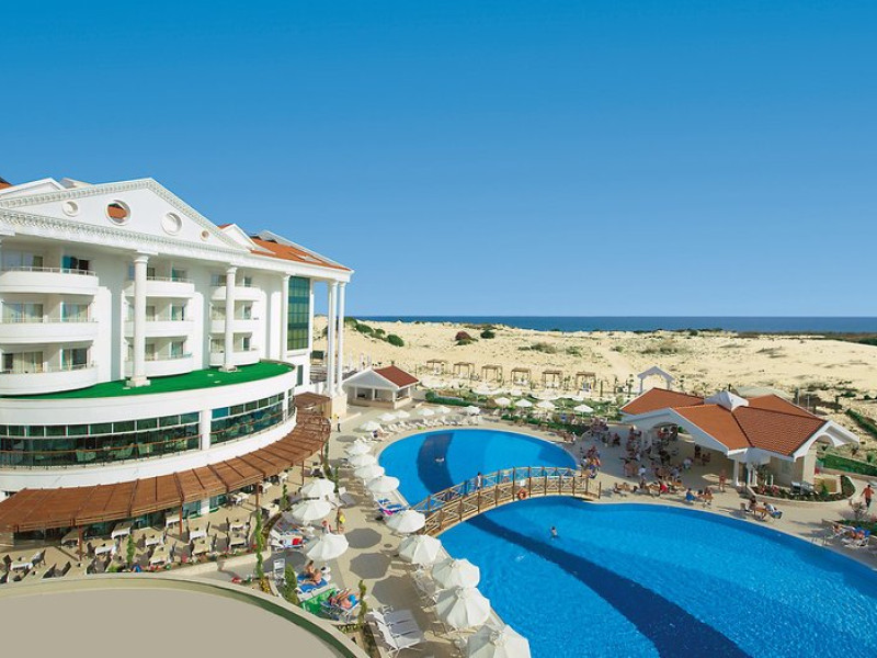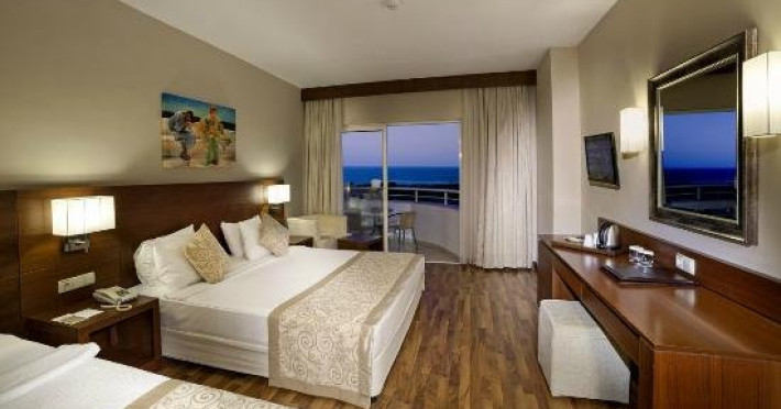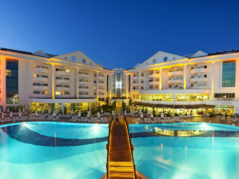Facilitati hotel: Hotelul ofera oaspetilor sai multiple facilitati: 1 restaurant principal, 1 bistro, 4 restaurante a la carte italian, mexican si turcesc), 1 piscina exterioara pentru adulti, 1 piscina pentru copii, 1 piscina interioara, gimnastica, centru fitness, aerobic, step, darts, volei pe plaja, servicii spa, baie turceasca, sauna, internet in loby, camera TV.