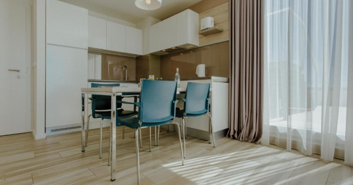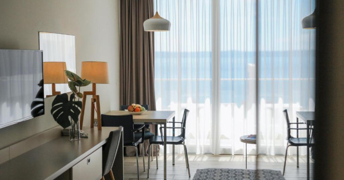 La proprietate este disponibil zilnic un mic dejun tip bufet, continental sau italian. Acest aparthotel are un restaurant care servește mancăruri din bucătăria italiană, mediteraneană și pizza. La cerere, sunt disponibile și preparate vegetariene, fără lactate și fără gluten.