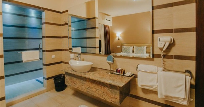 Camera dubla: Suprafata acestei camere este de 30 mp. Aceasta camera ofera aer conditionat, minibar, TV cu ecran plat si baie privata cu articole de toaleta gratuite, uscator de par, halat de baie si papuci.