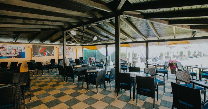 Restaurantul are deschidere catre Piscina Romanita, continuandu-se cu o frumoasa terasa in aer liber.