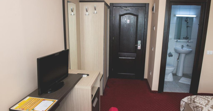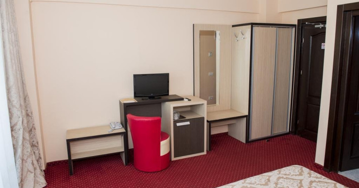 Camere: Camerele sunt utilate cu TV LCD, aer conditionat, baie proprie in fiecare camera, internet wireless si minibar.- Camerele din cadrul Hotel Romantic dispun de baie proprie cu uscator de par, balcon, TV, minibar, aer conditionat, internet wireless, cosmetice in baie, prosoape. Camerele se vor valorifica cu servicii de masa mic dejun.