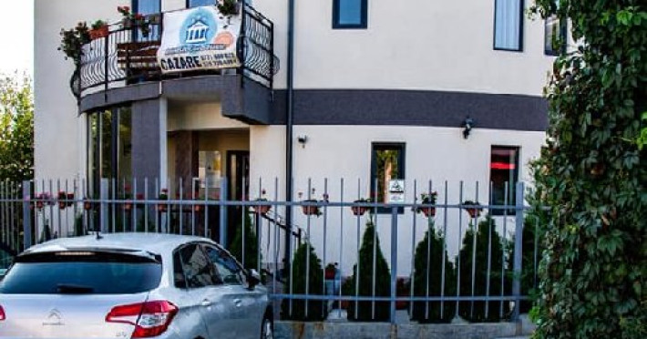 Parcarea proprie, supravegheata video, gratuita, situata in fata pensiunii.