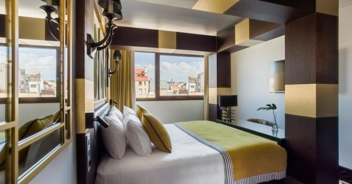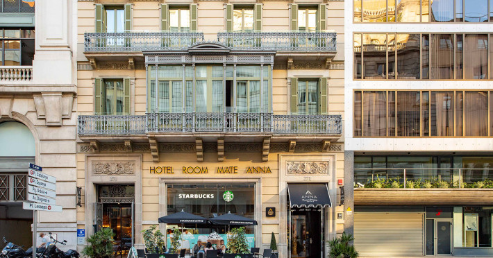 Inspired by Anna: tenacious, witty and full of energy; The Room Mate Anna is in the center of Barcelona and stands out for its impressive terrace with 360 degree views where it also has a solarium and a small summer pool. It offers free Wi-Fi throughout the city, not only in the hotel facilities. . Located in the modern Eixample district, near Plaça de Catalunya, in the heart of Barcelona, within walking distance of the best shops, bars and trendy restaurants in the city. Las Ramblas, Barceloneta, and Passeig de Grà cia can be easily reached. The airport is about 19 km and can be reached by metro, train or bus. The nearest metro station is Paseo de Gracia. There are also buses and taxi stops nearby. . It offers four types of rooms: Basic, standard, deluxe and junior suite. All of them are decorated with the characteristic style of Room Mate, making each room a unique experience. All rooms are equipped with free Wi-Fi, flat screen TV, safe, mini bar, desk, USB and HDMI connections, full length mirror and individual air conditioning and heating. The private bathroom has a shower, magnifying mirror, hairdryer and an assortment of amenities. . Buffet breakfast, free Wi-Fi throughout the city, Internet Corner, 24-hour reception, seasonal swimming pool, solarium terrace, and concierge service.Datorita dinamicitatii domeniului disponibilitatea ofertelor se modifica de la un moment la altul. De aceea ofertele sunt valabile in limita locurilor disponibile. Agentia nu este responsabila pentru eventualele neconcordante care pot aparea intre informatiile privind tarifele si alte detalii din site si informatiile primite in agentie. In aceste cazuri vor avea prioritate, intotdeauna, informatiile primite in agentie.