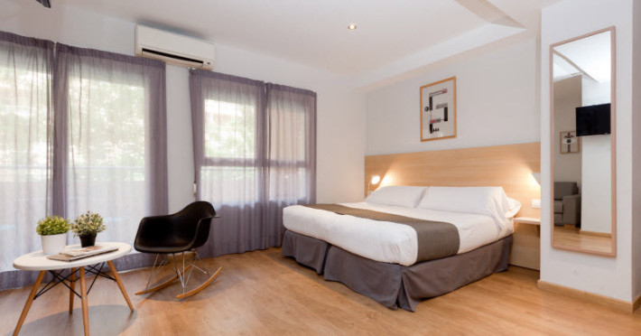 Modern rooms to rent for days near the City of Arts and Sciences, were inaugurated in February 2014. The rooms have a privileged position 100m from the City of Arts and Sciences and the old bed of the River Turia where can enjoy extensive gardens. It is the ideal starting point to start knowing Valencia, you are very well communicated to move to any point in the city by public transport or car. All rooms have outside windows and natural light, equipped with a sober decoration on natural textures and beautiful colors. |It also has a shared area with kitchen and dining room, free for all our customers. .Located just 100 m from the Ciudad de las Artes y las Ciencas, this hotel is the perfect base from which to enjoy the marvellous complex. The city centre and the beach are also just 5 minutes from the hotel. The hotel is particularly easy to find as guests can simply follow the signs to the Ciudad de las Artes y las Ciencas from wherever they are, including on all the motorways arriving in Valencia. Once guests are at the complex, they will find the hotel directly opposite the Palau de las Artes in Avenida Instituto Obrero 20..28 young artists decorated the 28 rooms of this hotel, creating spacious rooms that let the imagination run wild. Choose between sleeping on the bottom of a swimming pool, relaxing in a Buddhist temple, dreaming of the Thousand and One Nights in the Morroccan Riad or sleep surrounded by 101 lemurs. Many of the rooms have terraces which make them great spaces to relax in. There are rooms for all tastes and none will leave guests indifferent. Rooms have hairdryers and individually adjustable air conditioning and heating..MasterCard and VISA are accepted..There is a golf club 12 km away..Although the reception is open 24 hours, guests are requested to let the hotel know of their arrival time in advance. Guests may check-in from 2 pm and must check out by 11 am.Datorita dinamicitatii domeniului disponibilitatea ofertelor se modifica de la un moment la altul. De aceea ofertele sunt valabile in limita locurilor disponibile. Agentia nu este responsabila pentru eventualele neconcordante care pot aparea intre informatiile privind tarifele si alte detalii din site si informatiile primite in agentie. In aceste cazuri vor avea prioritate, intotdeauna, informatiile primite in agentie.