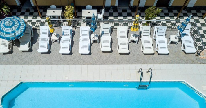 Facilități confortabile: Fiecare apartament are aer condiționat, baie privată, vedere la piscină și balcon. Facilitățile suplimentare includ frigider, birou și articole de toaletă gratuite. Parcarea privată este gratuită.