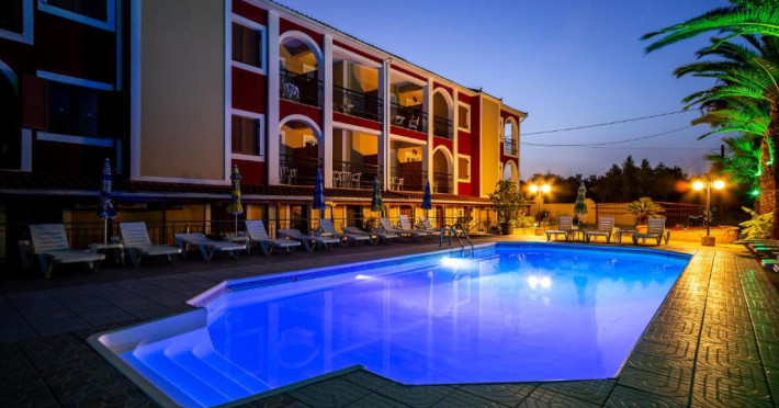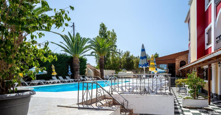 Cazare elegantă: Rose Club Apartments din Laganas oferă cazare la un aparthotel doar pentru adulți, cu piscină cu apă sărată, grădină luxuriantă, terasă și bar. WiFi gratuit este disponibil in intreaga proprietate.