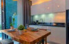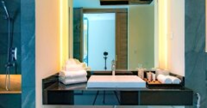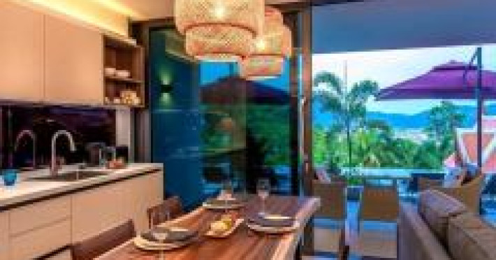 The hotel's environmentally sensitive, contemporary architecture style utilizes indigenous materials such as stone and timber throughout and features floor-to-ceiling windows in all private and public areas to offer a fully immersive experience of the hillside forest surroundings. The design incorporates sustainable practices, including rain water retention ponds to provide the entire resort water supply, the largest solar renewable energy system for any Phuket hotel and “landscaped” rooftops for energy conservation.