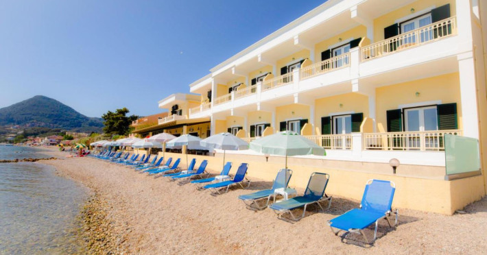 Plaja este la doar câțiva metri distanță de sediul nostru. La plajă, cei mai activi, se pot bucura de toate tipurile de sporturi acvatice (ski nautic, parasailing, fun rings, tobogane cu banane, canotaj, ciclism pe mare, scuba diving etc.). Cei care doresc să scape de toate, pot închiria o barcă cu motor și pot explora părțile secrete ascunse ale maiestuoasei insule Corfu.