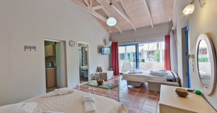Rouda Bay Hotel is a 3 star hotel with38 rooms amp; apartments designed to have style and at the same time to be practical and having a wide range of high quality leisure facilities (restaurant, cafeteria, snack bar). The hotel is situated exactly in front of the beautiful organized beach of Mikros Gialos, having a colorful garden with trees and flowers, with views of the bay of Rouda and Cephalonia Island. It is situated at Poros of Lefkas, a small, quiet village at the south side of the island. The two nearest towns are Nidri 15 Km (which is the most tourist attractive place of the whole island) and Lefkada 32 Km (the capital of the island). Near enough there are several other villages. Rouda Bay ideally situated providing easy access to restaurants and cafes but in the same time maintains a peaceful atmosphere. The hotel has a restaurant, a cafe-snack bar and an organised beach.Datorita dinamicitatii domeniului disponibilitatea ofertelor se modifica de la un moment la altul. De aceea ofertele sunt valabile in limita locurilor disponibile. Agentia nu este responsabila pentru eventualele neconcordante care pot aparea intre informatiile privind tarifele si alte detalii din site si informatiile primite in agentie. In aceste cazuri vor avea prioritate, intotdeauna, informatiile primite in agentie.