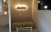 Pe plajă există șezlonguri și umbrele de plajă contra cost.