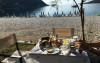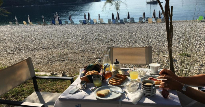 La Rouda Bay oaspeții au la dispoziție un restaurant care servește mâncare à la carte. Masa poate fi servită atât în interior, cît si în aer liber, pe terasă, în funcție de vreme. În cadrul proprietății există și un snack bar care servește băuturi și gustări. Oaspeţii îşi pot pregăti micul dejun şi alte mese şi le pot savura chiar pe balcon. Pentru cei care doresc să ia masa în natură, Rouda Bay pune la dispoziție o zonă de picnic.