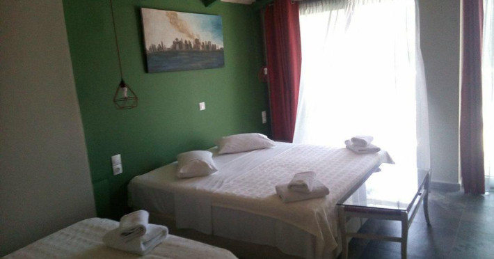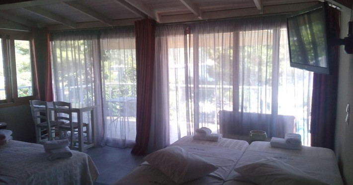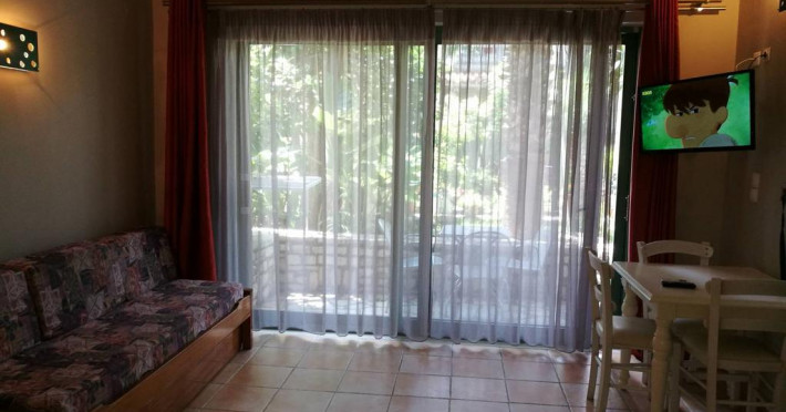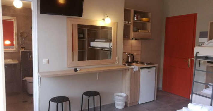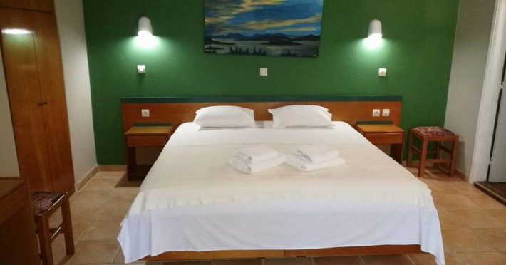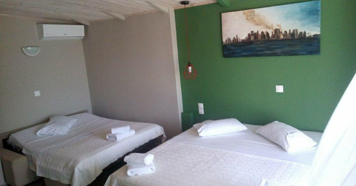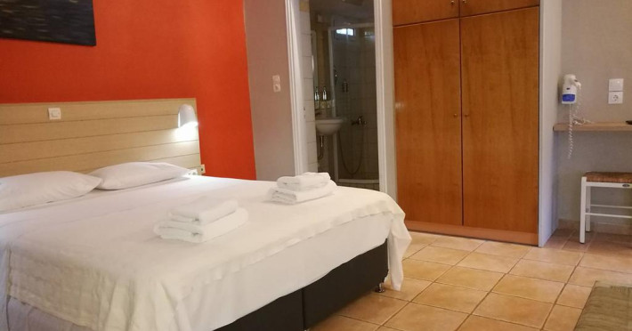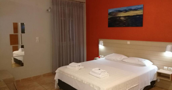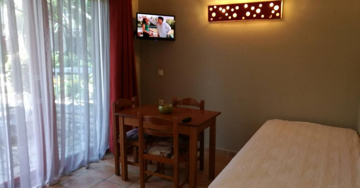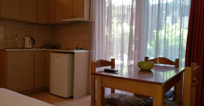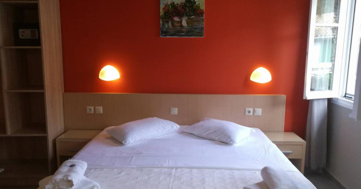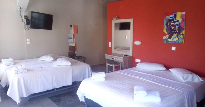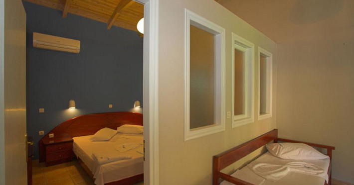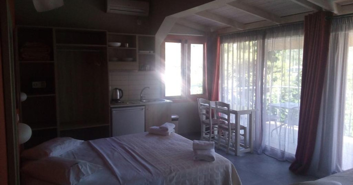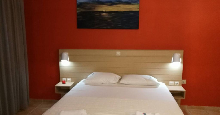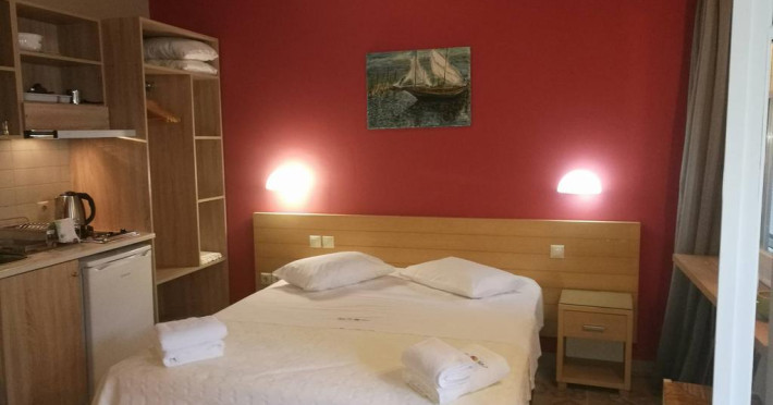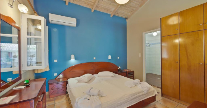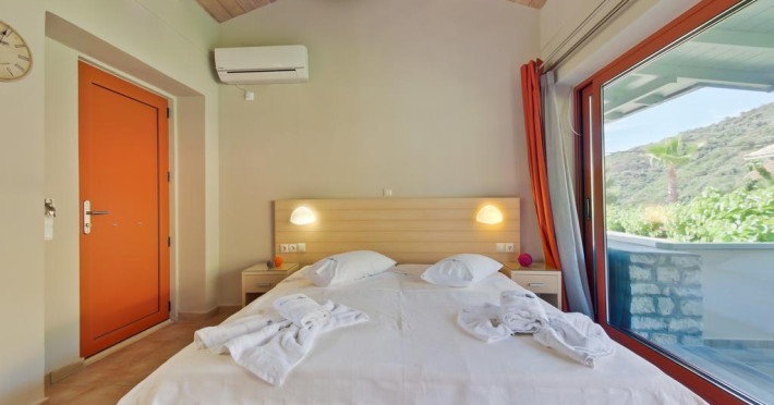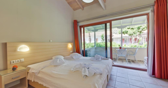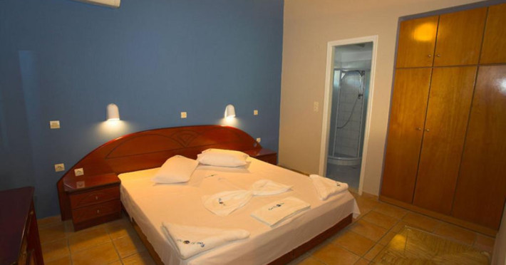 Sunt disponibile 28 camere. Unele camere au balcon cu vedere la mare sau la grădină. Camerele luminoase de la Rouda Bay sunt dotate cu gresie sau parchet, aer condiționat, Tv și seif. În camere există baie prevăzută cu foehn. Fiecare cameră dispune de cană pentru prepararea apei calde. Oaspeții pot solicita serviciul de room service pentru a servi masa sau diverse băuturi. Oaspeții au acces gratuit la serviciul Wi-fi în camere. Curățenia in cameră se face zilnic. Fiecare unitate de cazare include o chicinetă utilată cu frigider, plită de gătit și ustensile de bucătărie. Proprietatea oferă camere pentru familie cu o suprafață mai mare și un număr mai mare de paturi față de cele standard. Se pot rezerva de asemenea camere pentru nefumători.