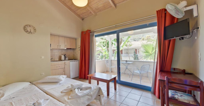 Situat în Poros (Lefkada), Rouda Bay se află la 70 m de plaja cu nisip amenajată și oferă unități de cazare cu aer condiționat, grădină și terasă în aer liber. Proprietatea are servicii de închirieri auto. Se oferă acces gratuit la internet Wi-fi în spațiile publice. Parcarea este posibilă pe stradă, în imediata apropiere a proprietății.