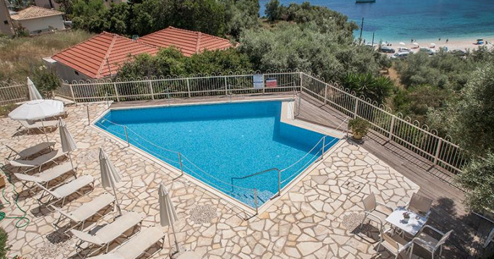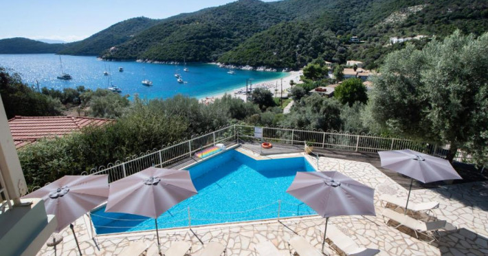 Rouda Village Hotel is located in the enchanting and quiet bay of Mikros Gialos, which is located in the southeastern part of Lefkada. The hotel features a swimming pool, secure parking, free WiFi in all public areas, and a small bar for coffee or drinks. It is offering unique views of Gialos beach, the bay with white pebbles and deep blue waters. The swimming pool isset on a raised terrace overlooking the bay. Sun loungers and plenty of dappled shade make it the perfect spot for that essential relaxing siesta. A stroll down the lane shaded by olive trees and bougainvillea leads to the waterfront with its tavernas and well stocked mini-market.