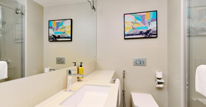 Acest hotel pune la dispoziția oaspeților camere cu aerul, birou, ibric electric, cutie de valori, televizor cu ecran plat și baie proprie cu duș. Baia proprie oferă o cadă, articole de toaletă gratuite și un uscător de păr. La Rove Al Marjan Island, fiecare cameră are lenjerie de pat și prosoape.