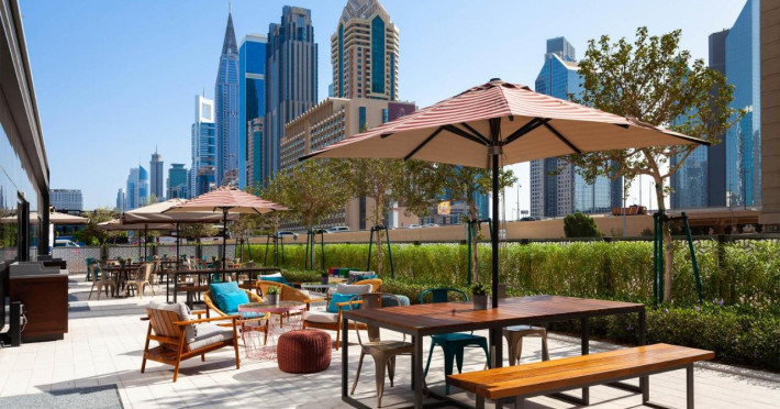 Hotelul dispune de un restaurant, bar, piscina exterioara si un centru de fitness deschis 24 ore pe zi. De asemenea, hotelul pune la dispozita oaspetilor sai si un bar, camera de jocuri, masa de tenis, cafenea si servicii de spalatorie.