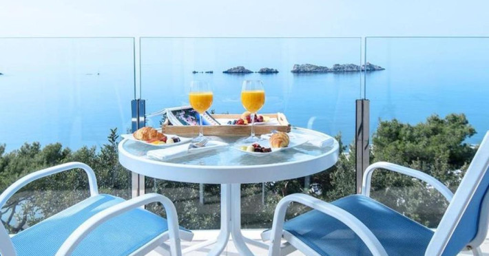 Royal Ariston Hotel este situat în complexul Royal Resort şi are plajă privată şi o piscină la malul mării, cu vedere panoramică. Proprietatea poate organiza excursii cu ghid pentru vizitarea insulelor Elafiti. În toate camerele și zonele publice este disponibil WiFi gratuit. Localul în aer liber Beach & Lounge Bar, prevăzut cu scaune de răchită şi umbrele de soare, servește cocktailuri și gustări. Acesta servește și micul dejun.