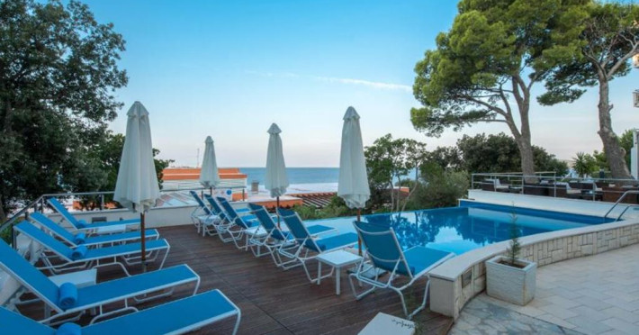 Restaurantul tip bufet Neptun oferă o terasă cu vedere la Marea Adriatică și la terasa de la piscină. Restaurantul à la carte Zoë servește preparate mediteraneene.
