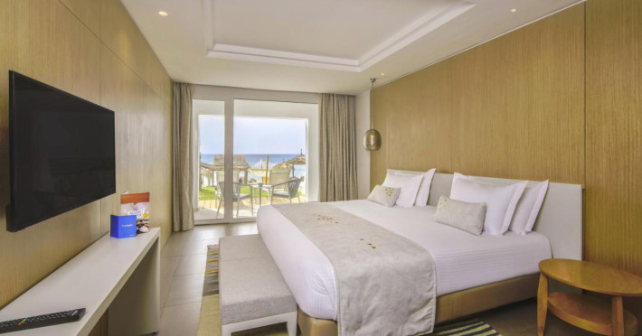Camerele confortabile de la Royal Azur Thalassa au pardoseală de gresie/ marmură, aer condiționat și Tv cu canale prin satelit. Un minibar și o mașină pentru preparare cafea sau ceai se află în fiecare cameră. Oaspeții pot solicita serviciul de room service pentru a servi masa sau diverse băuturi. În camere există baie cu cadă sau duș ce are în dotare foehn și articole de toaletă gratuite. Oaspeții au acces gratuit la serviciul Wi-fi în camere. Curățenia in cameră se face zilnic.