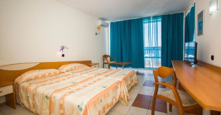 Hotelul Royal Bay se află la doar 10 metri distanță de plajă, situat în mijlocul frumoasei coaste sudice. Priveliștea este superbă, oferind o panoramă largă asupra mării, care încântă ochii și sufletele celor ce îl vizitează. În această atmosferă relaxantă și liniștită, oaspeții se simt ca acasă, bucurându-se de fiecare moment petrecut la Hotelul Royal Bay, transformându-l într-o experiență de neuitat.Facilități camere
