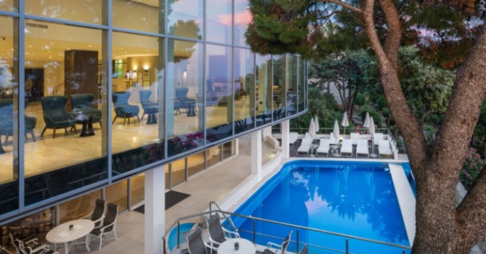 Descriere: Situat la doar cativa pasi de Marea Adriatica, Royal Blue se afla langa frumoasa promenada de pe plaja, care il conecteaza cu Golful Lapad si orasul vechi din Dubrovnik. Locatia sa ideala pe malul marii si facilitatile luxoase fac din aceasta proprietate o alegere excelenta pentru calatorii de lux.Localizare: Royal Blue Hotel este la 10 minute de mers cu masina de orasul vechi din Dubrovnik. Oaspetii pot ajunge in centrul Dubrovnikului cu un autobuz de la o statie situata la cativa metri de hotel.